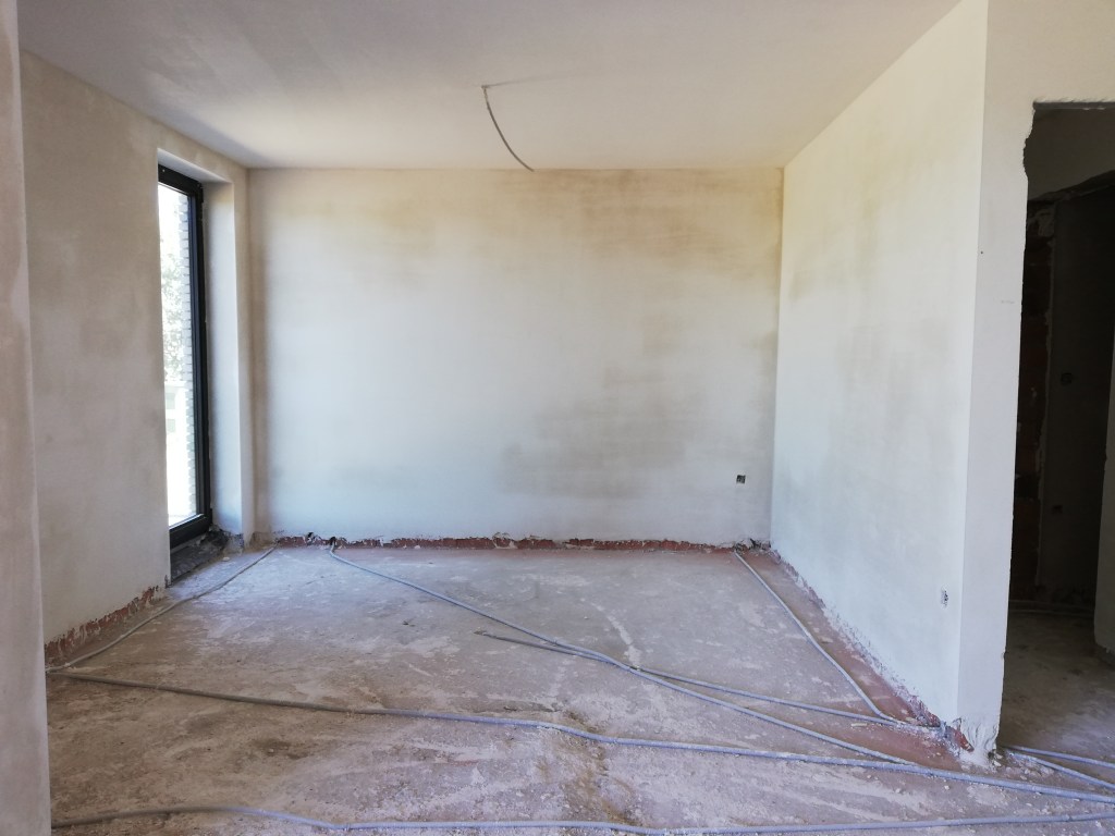 Juni 2019. Het appartement is bepleisterd. Een heel ander zicht dan rode bakstenen. Ik kon me de werkelijke ruimte nu beter voorstellen.