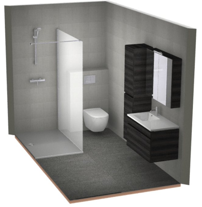 Oorspronkelijk was er een inloopdouche en een kast met twee wastafels. Ik heb dat veranderd, want ik wou nog een extra toilet.