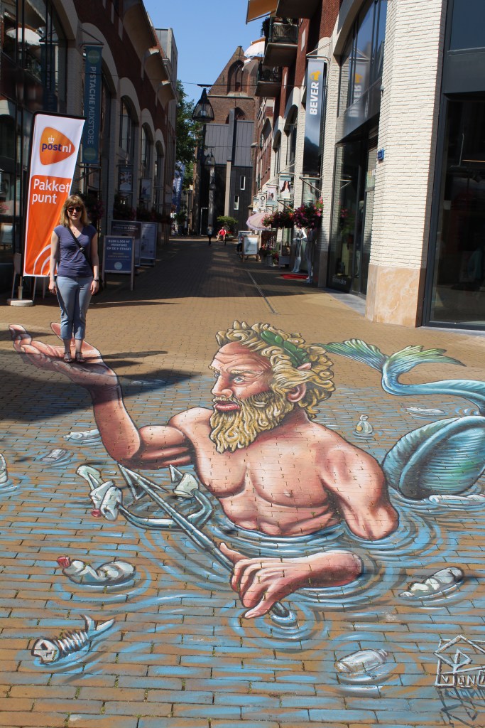 Het was de periode van Street Art. Overal in Zwolle waren er prachtige tekeningen op de grond geschilderd. Ik was natuurlijk weer de klos om te poseren voor papa-de-fotograaf. 😀