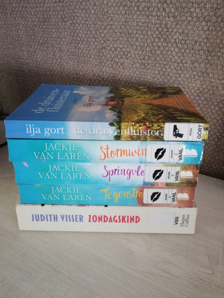 Oh ja, mag ik ook even een tip geven. Jackie van Laren (de auteur van Duingras en Thuiskomen) schrijft dagelijks een vervolgverhaal op Facebook. Ik heb dan ook vandaag 26 hoofdstukken gelezen, zover is ze al gekomen, en ik ben van plan om ze verder te volgen. Een heel leuk, onvoorspelbaar verhaal. Ook collega-auteur Petra Vollinga schrijft een vervolgverhaal op Facebook. Ik ken haar boeken nog niet, maar dit vervolgverhaal smaakt naar meer. 🙂