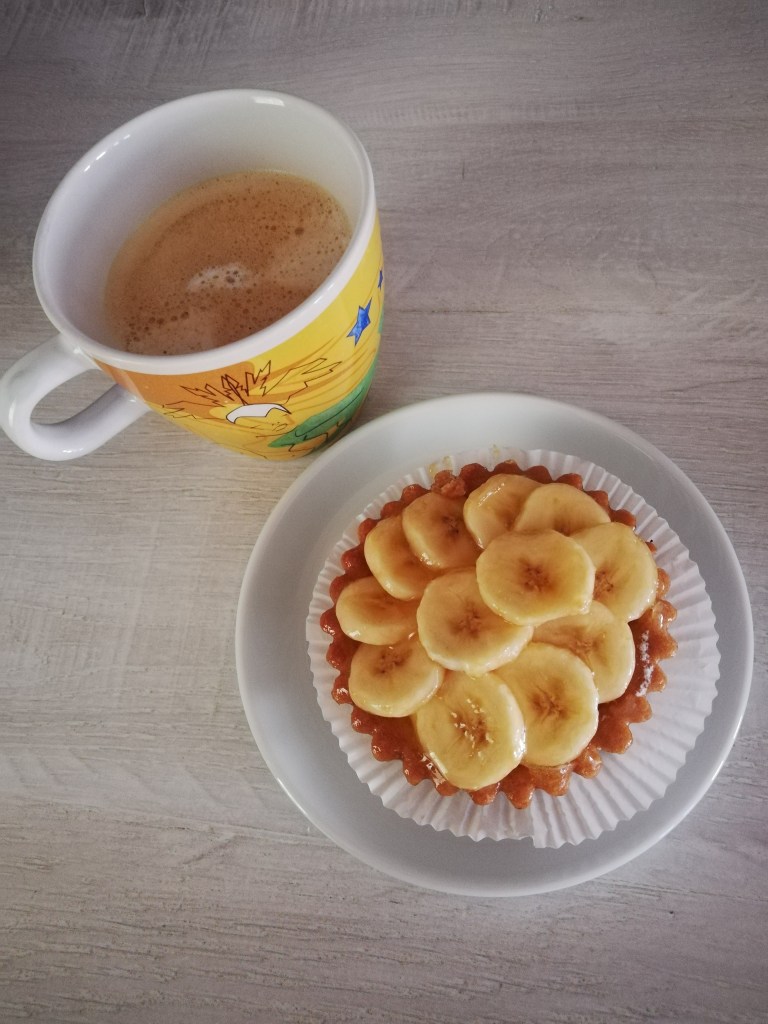 In de voormiddag zit ik weer klaar voor een livestream, met een kop koffie en (deze keer) een bananentaartje. 🙂