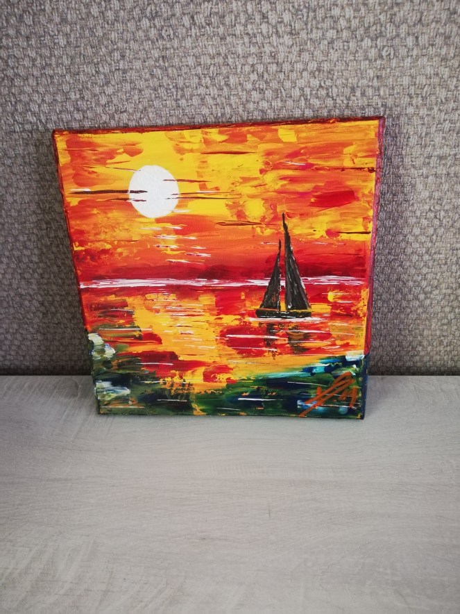 Ik wil mijn werkplek een beetje opvrolijken. Mijn nonkel is de kunstenaar in onze familie en ik vroeg of hij iets wilde maken. Ik gaf bovenstaand voorbeeld (stond op zijn Facebook-pagina) en nu bleek dat hij dit nog in zijn bezit had. En vanaf nu dus in mijn bezit. Ik ben er heel blij mee! Dank u, nonkel! 🙂