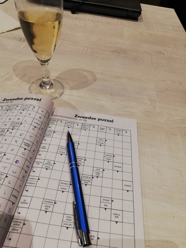 Ik speel een beetje vals. 😉 Deze foto is namelijk genomen op 31 december 2019. Mijn oudjaarsavond besteedde ik al puzzelend met een glas cava. Ik heb namelijk niets met oudjaar. Een dag zoals een ander. Ik lig ook altijd voor middernacht in bed, die vermoeidheid hé…