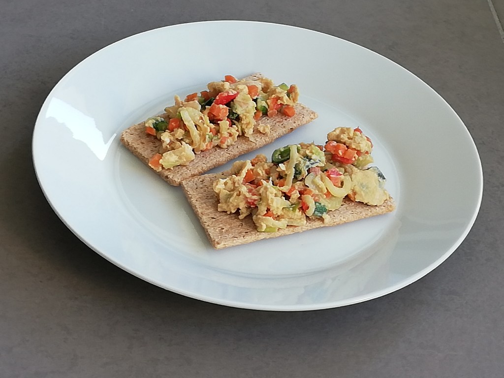 In kader van nieuwe receptjes uitproberen: vandaag heb ik een roerei met Italiaanse groenten gemaakt. Een cracker met dit mengsel besmeren en je hebt een vullende maaltijd.