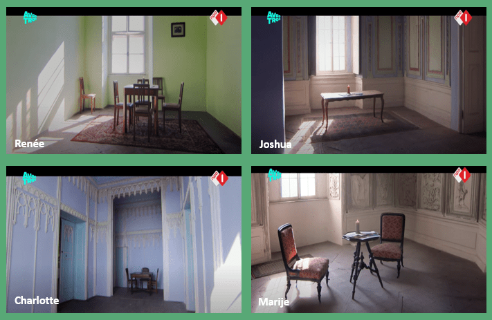 Tijdens de eerste opdracht (Door dezelfde deur) zaten alle kandidaten apart in een kamer. Enkel de mol ging even naar buiten om te gaan kloppen op de andere deur. Aangezien deze deur openstaat, denk ik dat dit de kamer van de mol was. En toen begon ik te puzzelen. De kamers hadden elk een eigen kenmerk, waardoor het makkelijk was om de kamers aan de kandidaten te koppelen. Hieronder heb ik nog even een overzicht gemaakt.