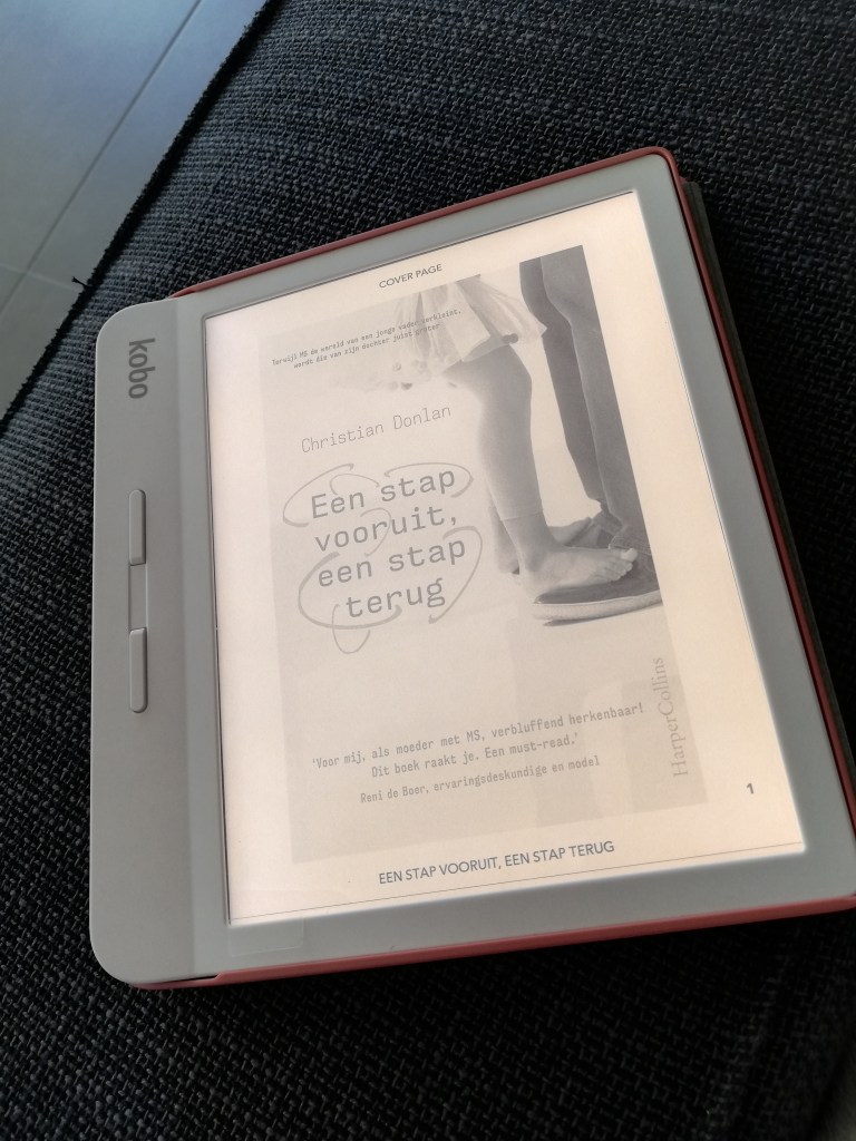 Ik begin ook in een nieuw e-book dat ik leen uit de bib. Een stap vooruit, een stap terug van Christian Donlan gaat over een papa met MS. Met een klein hartje begin ik eraan, want nu komt het wel heel dichtbij, maar toch ben ik benieuwd.