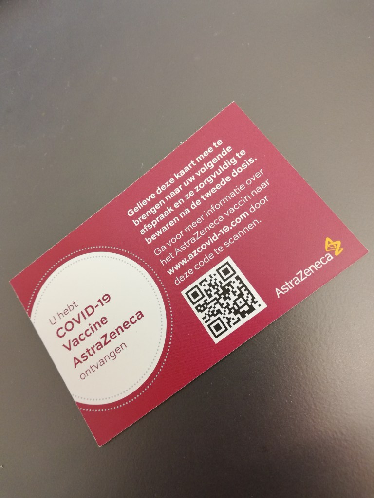Op 5 maart kreeg ik de eerste inenting van AstraZeneca, vandaag was het tijd voor de tweede. Ik ben ingeënt met AstraZeneca voordat de leeftijdsgrens verhoogd werd naar 41 jaar, waardoor ik dus ook mijn tweede inenting AstraZeneca kreeg.