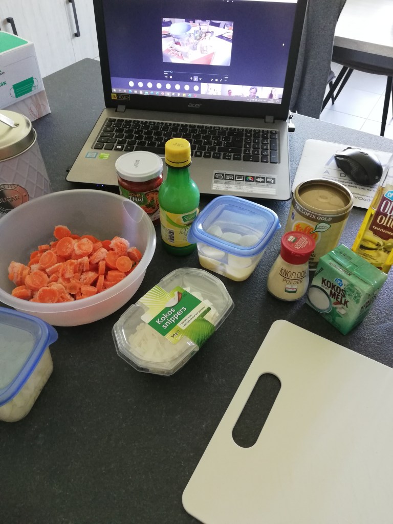 Ik was al vroeg wakker, altijd dus veel verschil maakt het niet uit, dus ik begon dan maar aan de voorbereiding. Om het tijdens de online cooking sneller te laten verlopen, moesten we al een mise-en-place doen.