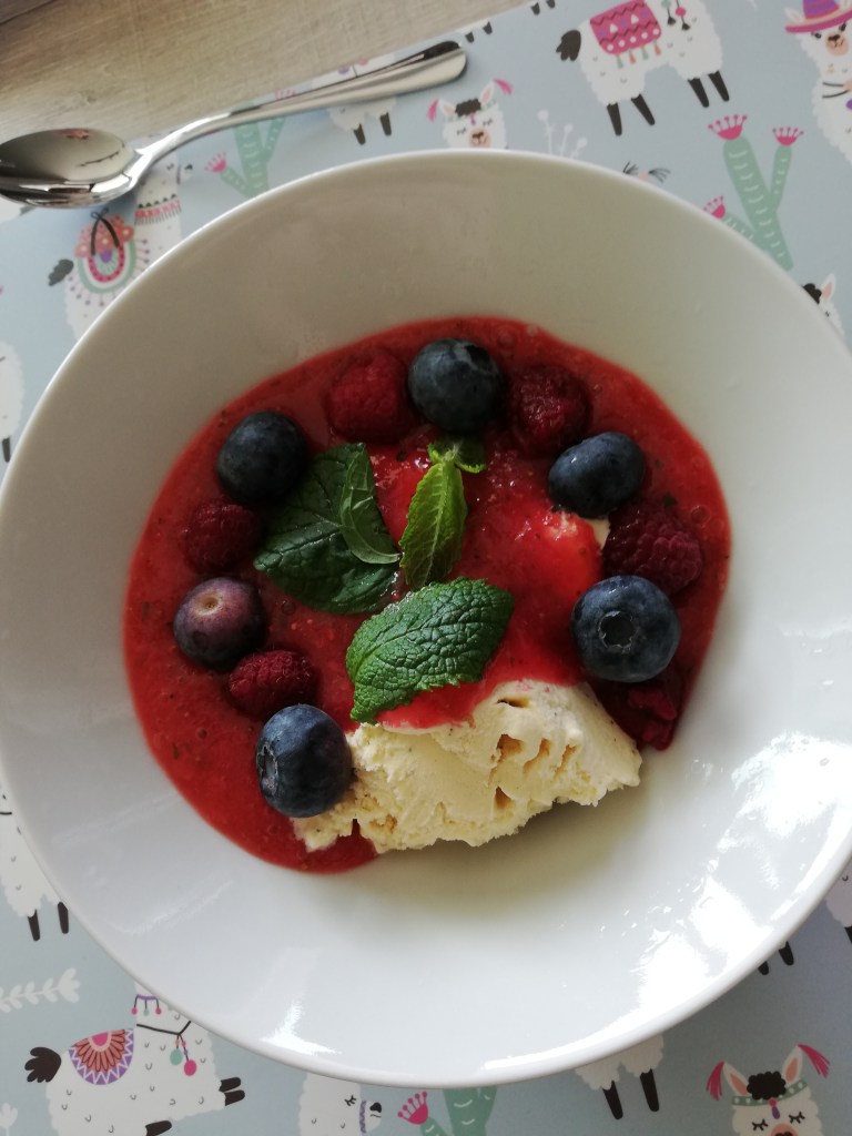 Het aardbeiensoepje werd in de koelkast gezet zodat het lekker fris kon worden. De kommetjes om dat soepje in te doen stonden trouwens in de diepvriezer. We gingen over naar het voorgerecht: een soepje.