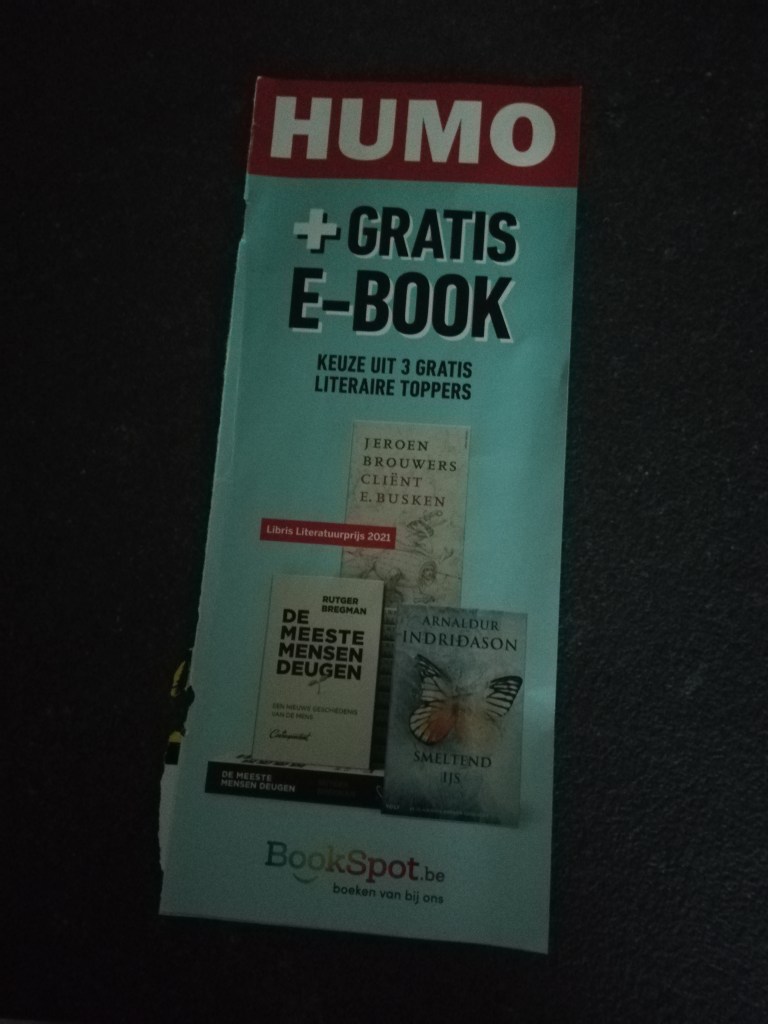 Mijn ouders hebben een abonnement op Humo, dus heel braaf heb ik gevraagd of ik de unieke code mocht hebben. Geen probleem. Ik koos uiteraard het boek De meeste mensen deugen.