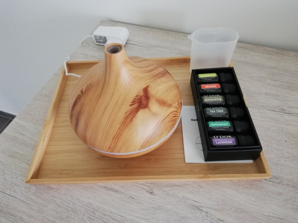 Ik heb de aromadiffuser van O’dor met de 6 meest gebruikte oliën (lemon grass, orange, eucalyptus, peppermint, tea tree en lavender) gekocht. Het is niet goedkoop, maar het is ook niet pokkeduur. Ik vind dit een ideale set om mee te starten en kennis te maken met aromatherapie.