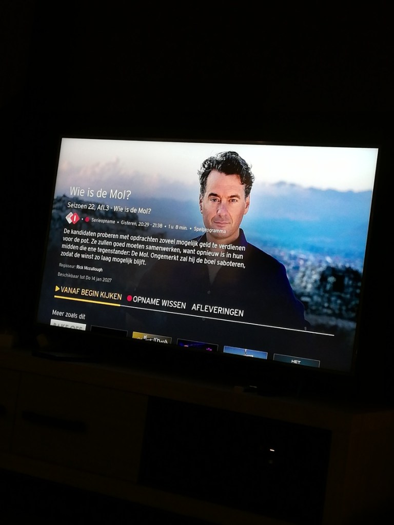 En dan kijk ik naar Wie is de mol?, gevolgd door Moltalk. Zowel Fresia als Laetitia zitten er nog in, dus ik ben geen punten kwijt.
