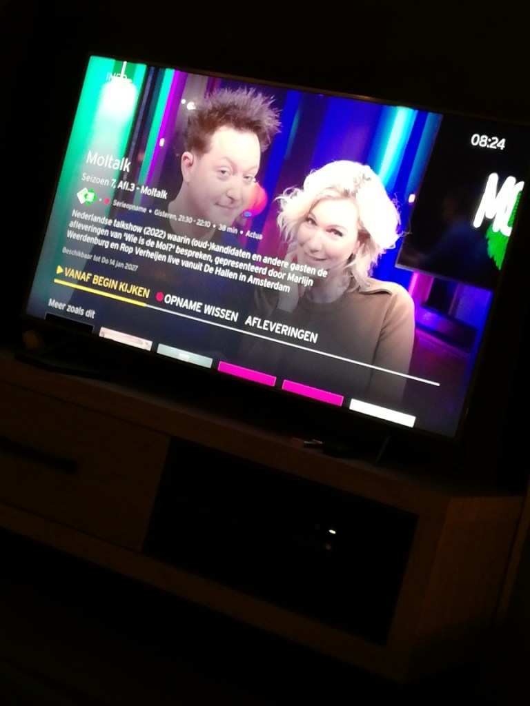 En dan vergeet ik weer foto’s te trekken. Ik kijk nog wat tv, doe een aflevering Nederland in beweging, ik ga me douchen, ik lees wat, ik eet, …