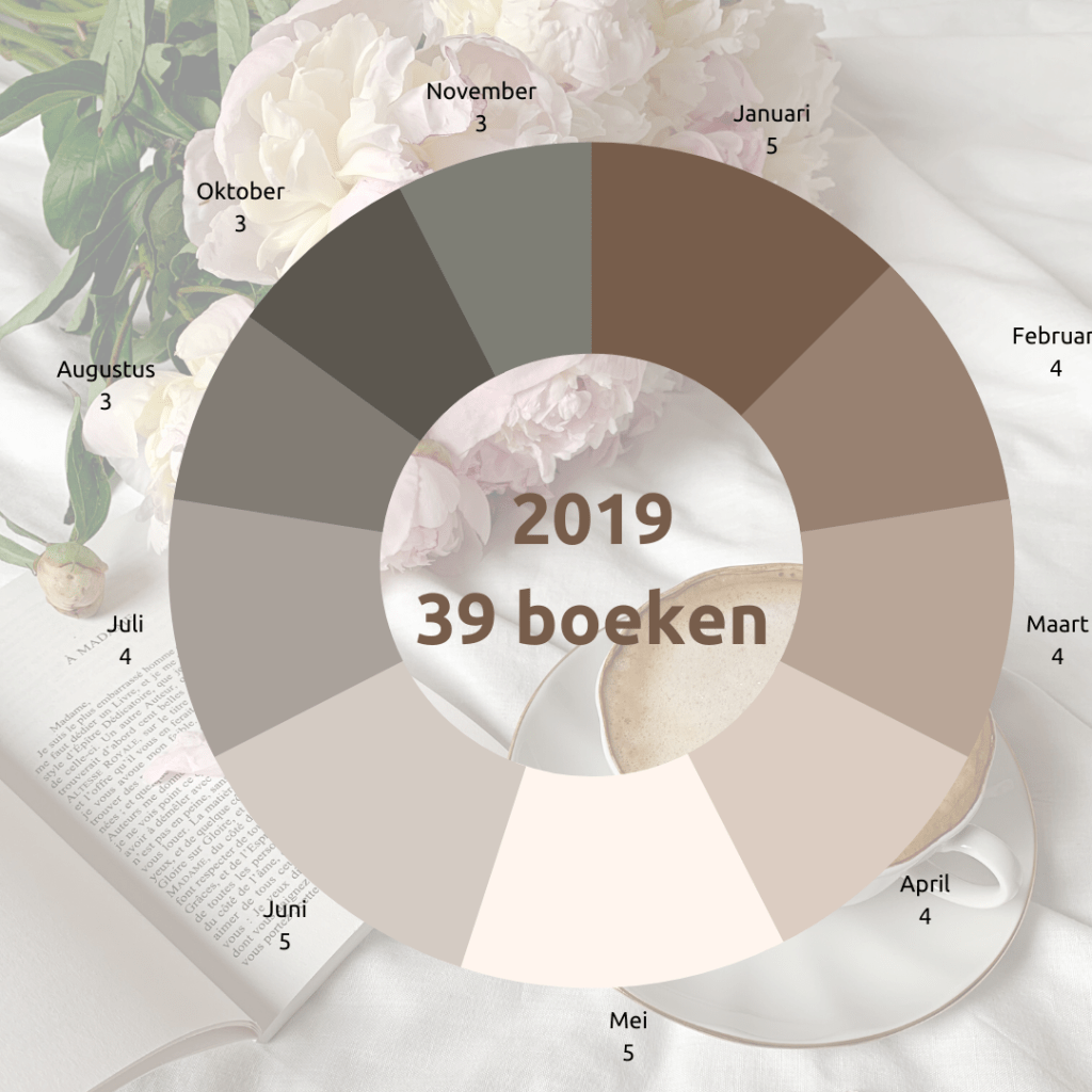 Tja, 2019… Zoals je kunt zien, zijn de maanden september en december weggevallen. Daar las ik dus 0 boeken uit. In augustus 2019 kreeg ik mijn eerste opstoot en daarmee ineens ook een gigantische leesdip. Want die “gelezen boeken” waren boeken voor de KJV (waar ik voor coronatijden begeleider was).