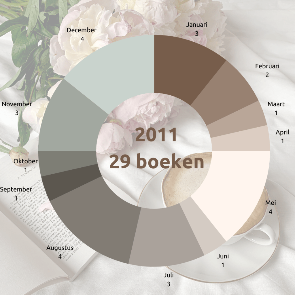 2011 was een volledig jaar op de schoolbanken bij de bacherloropleiding lager onderwijs. De hogeschool was slecht bereikbaar (lees als: schooluren komen niet overeen met busuren, station is in een nabijgelegen stad) en dus reed ik met de auto, samen met een medestudent. Ik weet nog dat ik toen voornamelijk ’s avonds in bed las. Nu doe ik dat dus totaal niet meer, ’s avonds in bed lezen.