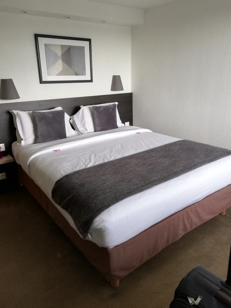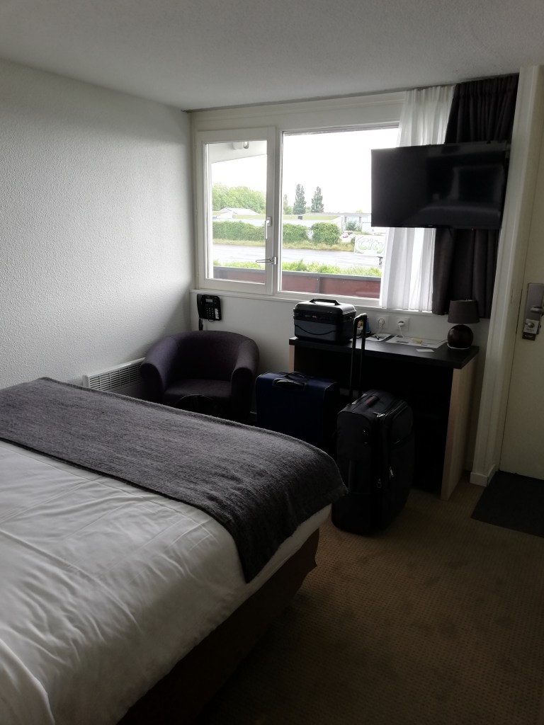 We logeren in het Kyriad in Lisieux. Een goedkope kamer, ideaal als je onderweg bent. Ik duik meteen mijn bed in en doe een welverdiend dutje. Toch moet ik me er weer uitslepen om te gaan eten.