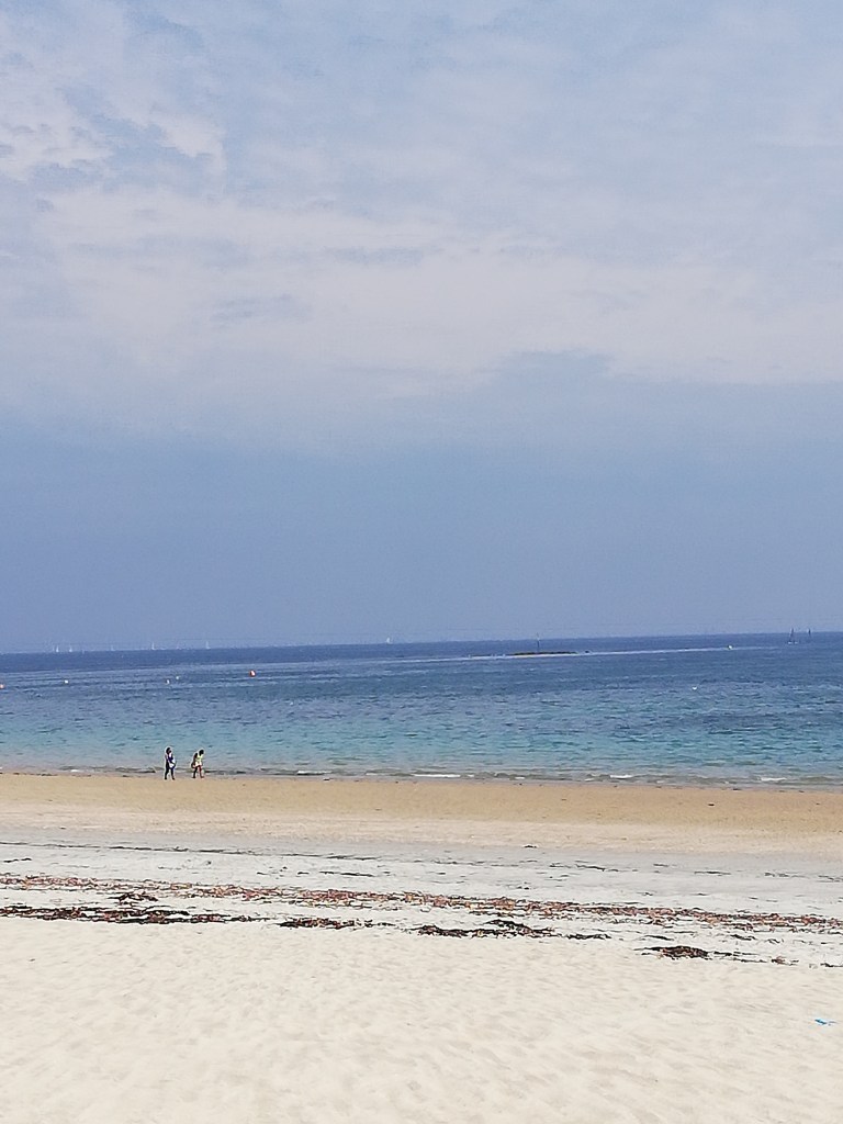 Eerst bezoeken we de toeristische dienst voor een old school stadsplan. Nadien wandelen we verder naar de boulevard. Wat is deze mooi aangelegd! En dan zien we de zee. We moeten nog wel een hele stoet oldtimers passeren, want het is vandaag zo’n oldtimers happening in Carnac. Ik nestel mij neer op een bankje met uitzicht op zee terwijl de rest nog even naar de oldtimers kijkt. Mij zeggen auto’s niets, ik zit naar de zee en de mensen te kijken. Vind ik ook heel leuk. 😀