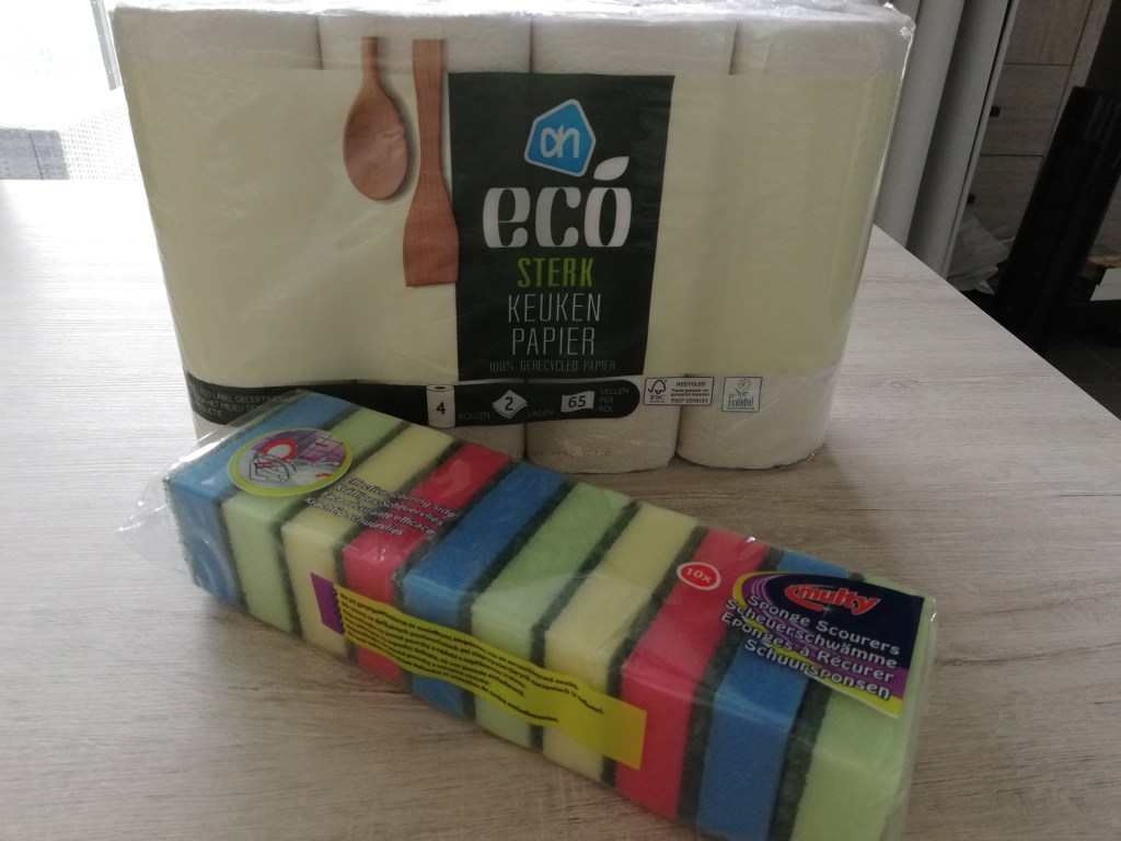 Het keukenpapier is bijna op. En de schuursponsen ook. Dus deze heb ik weer ingeslagen.