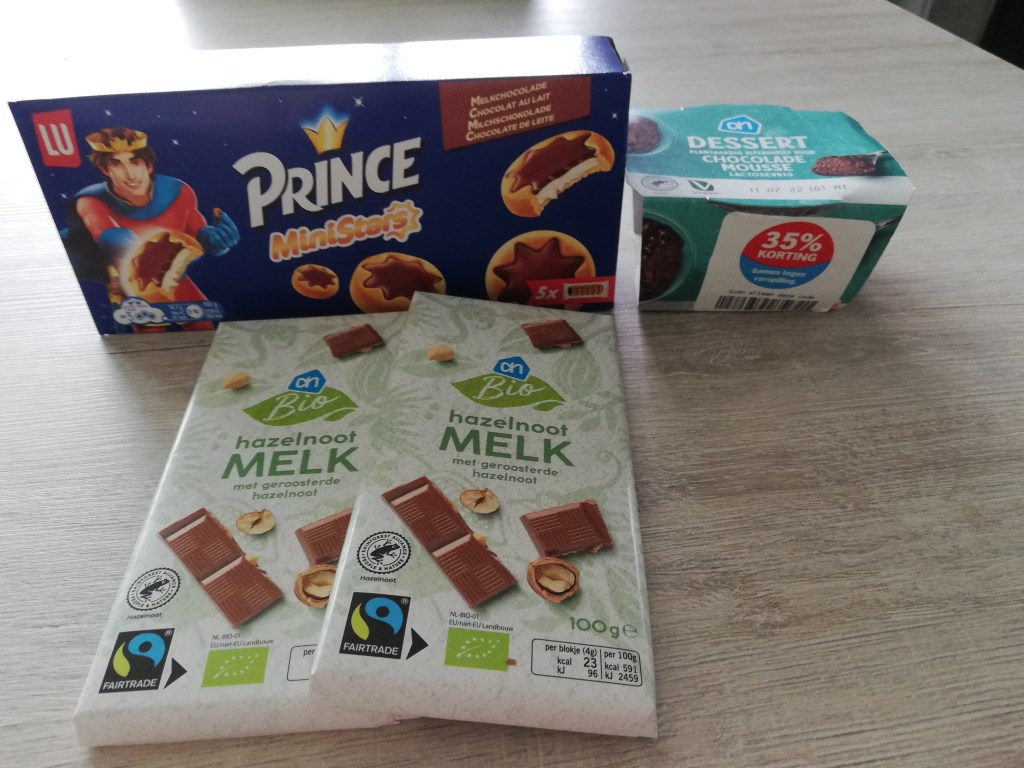 - 2x Bio melkchocolade met hazelnoot (3,38 euro)