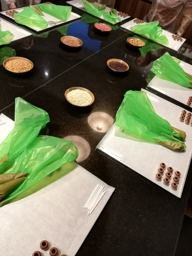 Ik vond de workshop heel leuk om te doen, maar het werd ook meteen duidelijk dat ik niet de beste chocolatier zou zijn. Ik heb staan knoeien met die spuitzak. Het lijkt makkelijk, maar dat is het niet. Voor mij dan toch. 😉