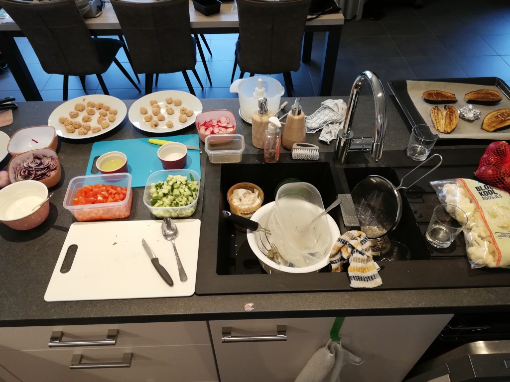 Net als in 2021 organiseerde de jongerenwerking van MS-Liga Vlaanderen een kookworkshop. Ook dit jaar schreef ik me in. Bovenstaande foto’s zijn een voor, tijdens en na. Tijdens is werkelijk een ontplofte keuken.