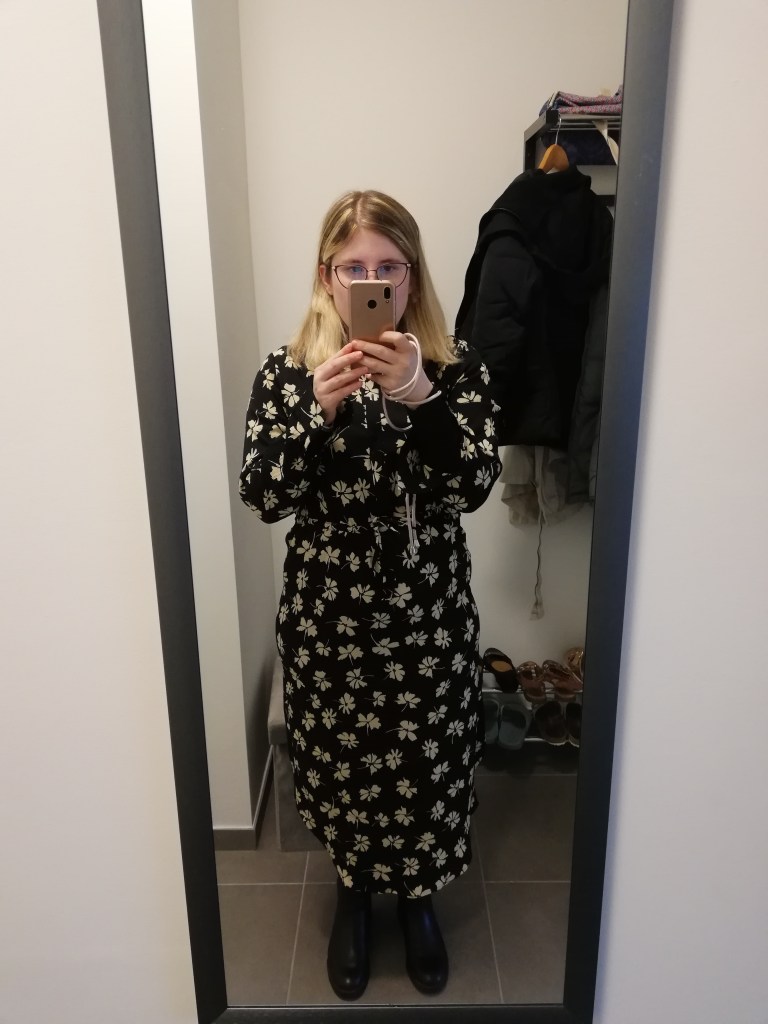 De tweede outfit was trouwens in het lang. Ook de eerste keer, want met mijn 1m61 had ik altijd de aanname dat langere kledij mij niet zou staan. Maar eigenlijk valt het best goed mee.