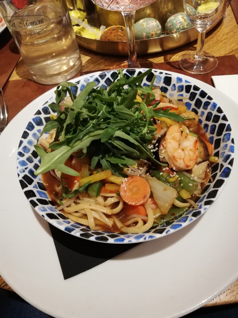 Onderweg naar huis gingen we nog iets eten. Ik had ondertussen niet veel honger meer. Soms kan ik misselijk worden van de honger en dan over mijn hongerpunt heen zijn waardoor ik in niets meer zin heb. Uiteindelijk koos ik voor de wok scampi. Het was lekker, maar ik heb niet alles opgegeten. Ik heb voornamelijk de scampi’s eruit gevist. Altijd het duurste uit je bord opeten. 😉