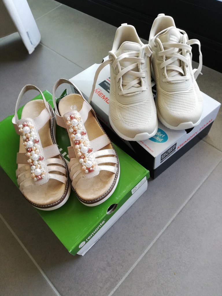 Ik ben een heel moeilijke qua schoenen. Schoenen moeten goed en comfortabel zitten, en het liefst ook een beetje mooi zijn. Ik ging dus op schoenenjacht en was al voorbereid op een tour der schoenwinkels. Uiteindelijk vond ik bij Berca deze twee paar.