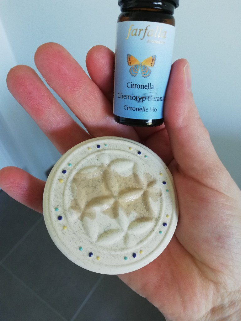 Op mijn nachtkastje ligt standaard een geursteen met een olietje. De citronellageur geeft je instant een zomergevoel. Geursteen en olie zijn van het merk Farfalla en kocht ik bij EccoVerde.