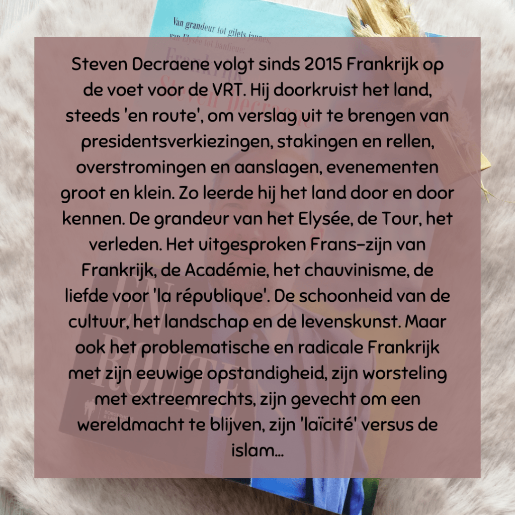De schrijfstijl is soepel en vlot. Binnen de grote hoofdstukken zijn er kleine hoofdstukken van 2 à 3 pagina’s. De inhoud doet echter heel politiek aan. De grootste politieke figuren zoals bv. de huidige president Emmanuel Macron en zijn tegenhangster Marine Le Pen komen veelvuldig aan bod. De betogingen van de gele hesjes worden uitvoering beschreven. Aan de vluchtelingencrisis in Calais wordt ook heel wat inkt gewijd. Achteraan het boek is er wel een kort toeristisch luik, want Steven Decraene beschrijft zijn favoriete bezienswaardigheden in Frankrijk.
