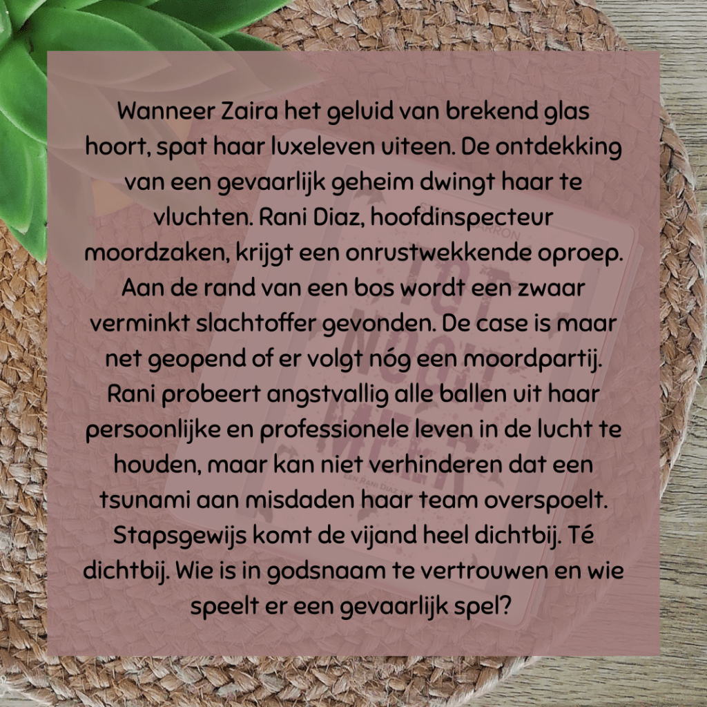 Het voordeel aan een serie is dat je ook meegroeit met de personages. Het liefdesleven van Rani neemt een nieuwe wending, maar wat ik ook heel fijn vond om te lezen was de band tussen Rani en chef Van Damme. Een oude vos verliest zijn streken niet, maar wordt misschien wel wat milder. 😉