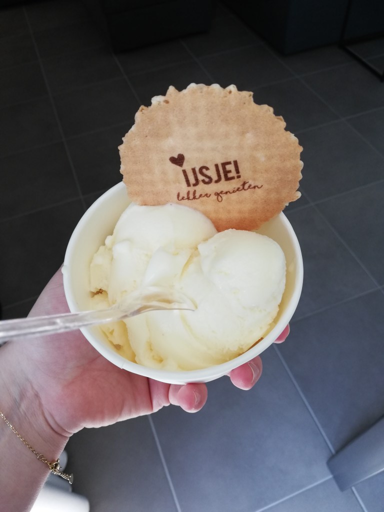 Nadat mijn eetlust weer terug was, trakteerde ik mezelf op een ijsje. Het bolletje links was lavendel, het bolletje rechts vanille. De lavendel rook en proefde je goed. Het was lekker en zeker voor herhaling vatbaar, maar ik zou er geen liters van kunnen eten.