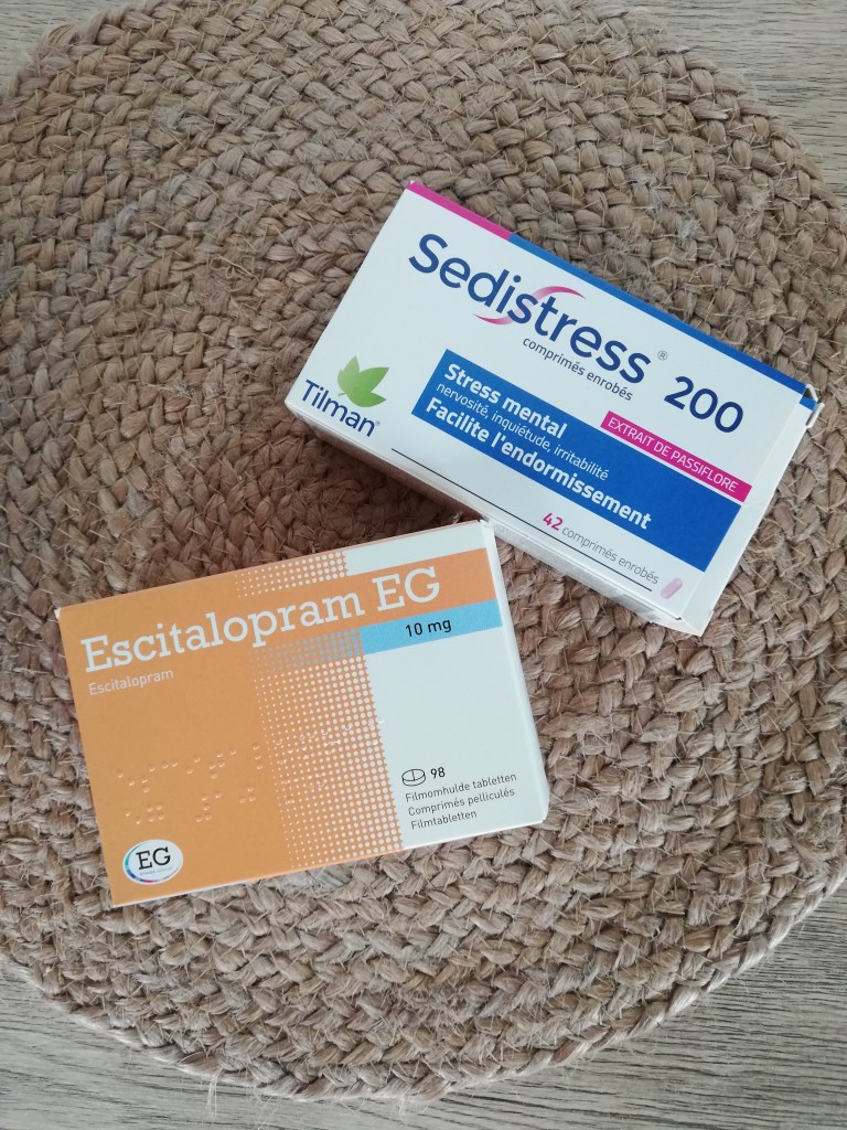 Medicatie. Ik kreeg heel wat voorschriften mee van de huisarts. Sedistress is een natuurlijk, niet-verslavend kalmeermiddel op basis van valeriaan. De huisarts schreef zelfs een benzodiazepine, die verslavende kalmeermiddelen dus, voor. Deze ben ik niet gaan halen. Ik wilde eerst proberen met het natuurlijke middel.