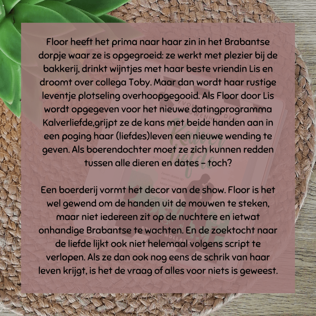 De aanloop naar het echte verhaal, de werkelijke deelname aan Kalverliefde, vond ik een beetje langdradig. Maar zodra hoofdpersonage Floor de auditie ingaat, wordt het pas echt interessant. 😁 Dat deel heb ik in een ruk uitgelezen.
