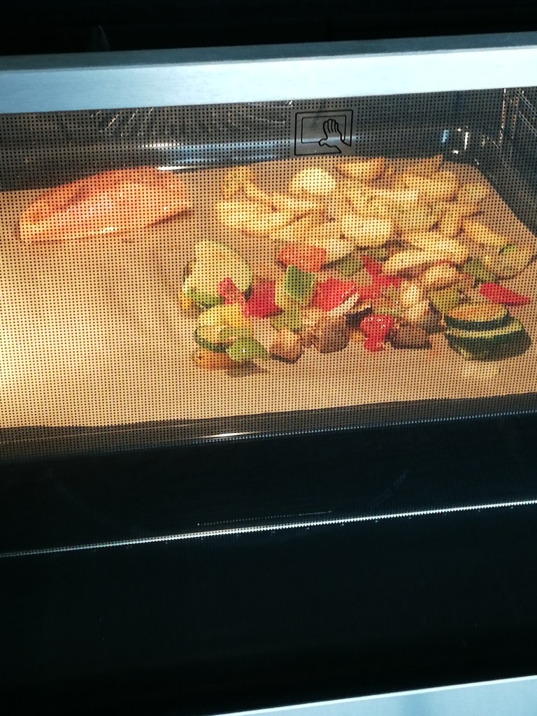 Zalmfilet, rozemarijn aardappelpartjes en een groentemix de oven inschuiven op 180°C en dat voor 20 minuten. Daarna heb ik een heerlijk maaltje. 🙂
