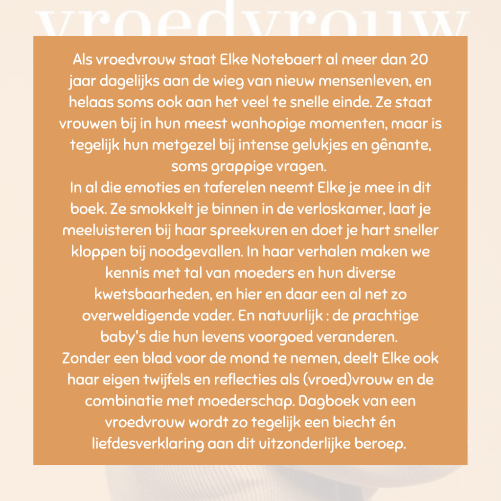 Eerder heb ik al soortgelijke boeken gelezen van de Nederlandse collega’s van Elke, zoals de boeken van Marlies Koers. Het valt me op hoe verschillend geboortezorg is tussen Nederland en België.