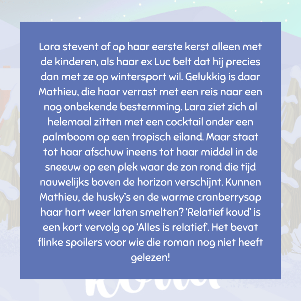 Het verhaal speelt zich af in de maand december, dus de kerstperiode komt er ook in voor. Ideaal boek dus om te lezen in aanloop naar kerst.