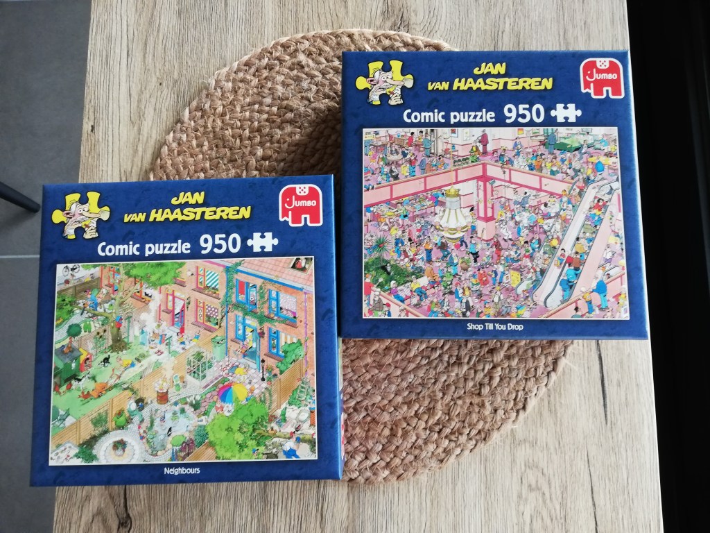 Bij Aldi stonden er puzzels van Jan van Haasteren in de aanbieding. Na het werk heb ik een tussenstop gemaakt. Er lag nog van elke puzzel eentje (ik denk dat er 5 verschillende puzzels waren), dus ik heb snel mijn twee favoriete puzzels meegenomen.