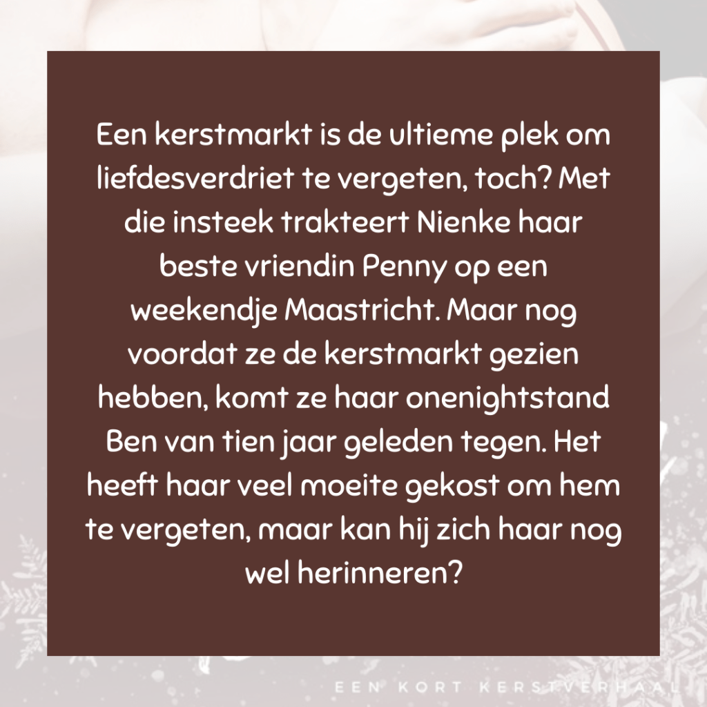 Dit verhaal is een kortverhaal in een echte kerstsfeer. De glühwein vloeit rijkelijk en de kerstbomen staan klaar om verkocht te worden. Daarnaast is er nog een mooi kerstproject en is er liefde te bespeuren. Alle ingrediënten voor een kerstige feelgood dus.