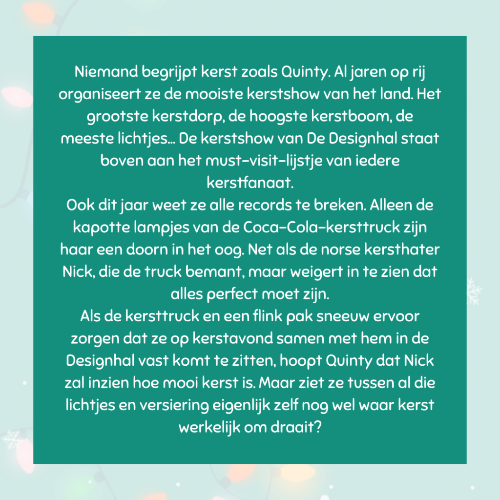 Door de vlotte schrijfstijl en de korte hoofdstukken vlieg je als de arrenslee van de kerstman doorheen het boek. Dit is kerstige feelgood en ik hou ervan! 🥰