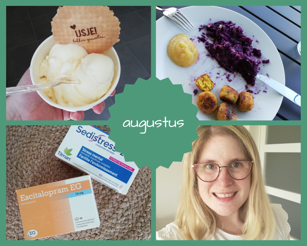 Augustus was heftig. Op de eerste dag van deze maand stortte ik helemaal in. Ik was mentaal en fysiek op. Het ging niet meer. De huisarts schreef me thuis en in samenspraak startten we Escitalopram op. Die eerste week was heel hels. Ik heb heel veel gehuild, mijn tranendal deed niet onder voor het slechte weer buiten. Daarnaast at ik ook iets verkeerds en kwam er een heftige paniekaanval opzetten. Ik heb twee weken amper gegeten. Al kokhalzend zat ik boven een kom cornflakes om toch maar iets binnen te krijgen. De eerste deftige maaltijd dat ik binnenkreeg, waren aardappelen met rode kool en groenteballetjes.