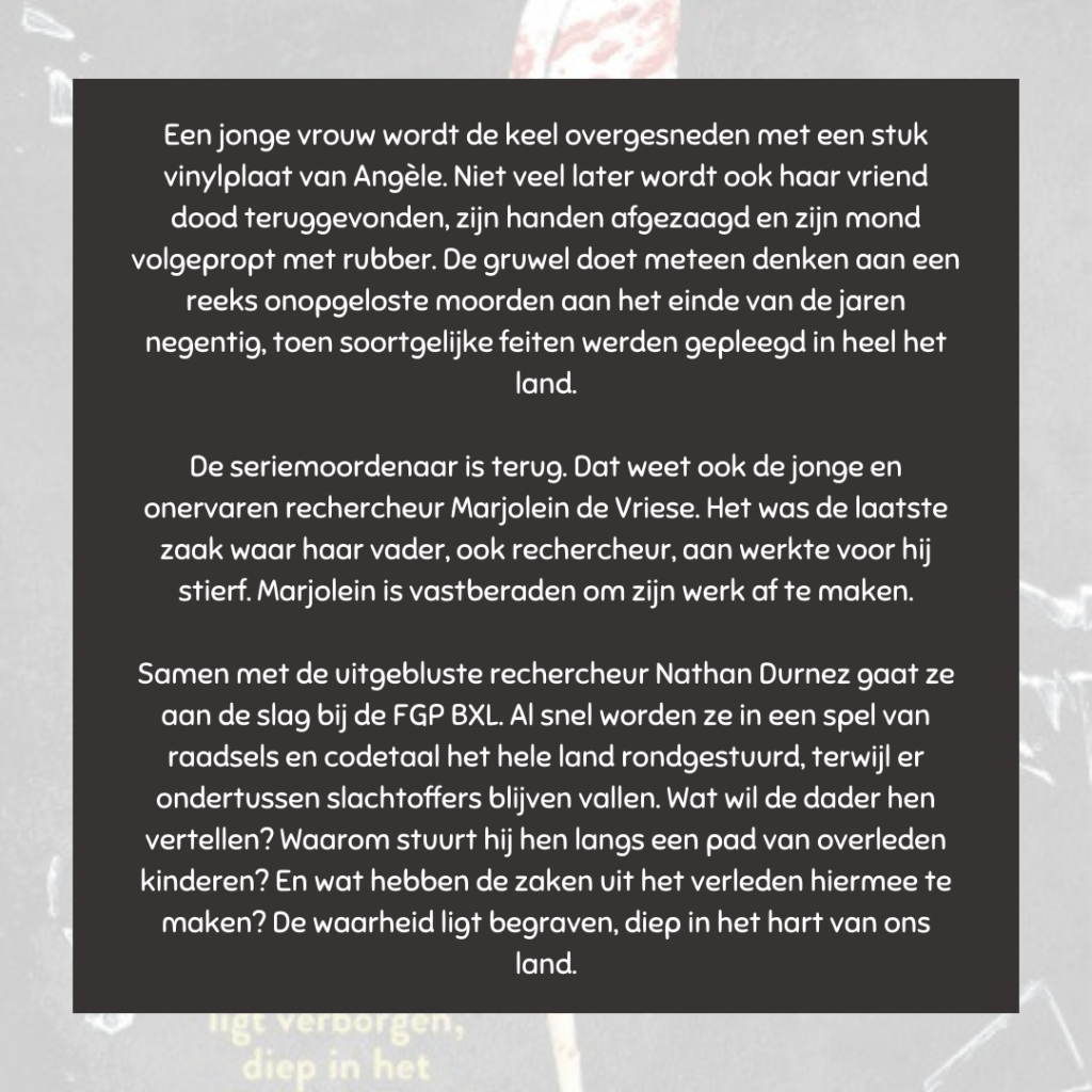 Ik vind dit boek een echte pageturner. Er zit veel spanning in, een vleugje Belgische geschiedenis waar we echt niet fier op moeten zijn en het is in een verfrissende Vlaamse taal geschreven. Meer van dat graag! 😊