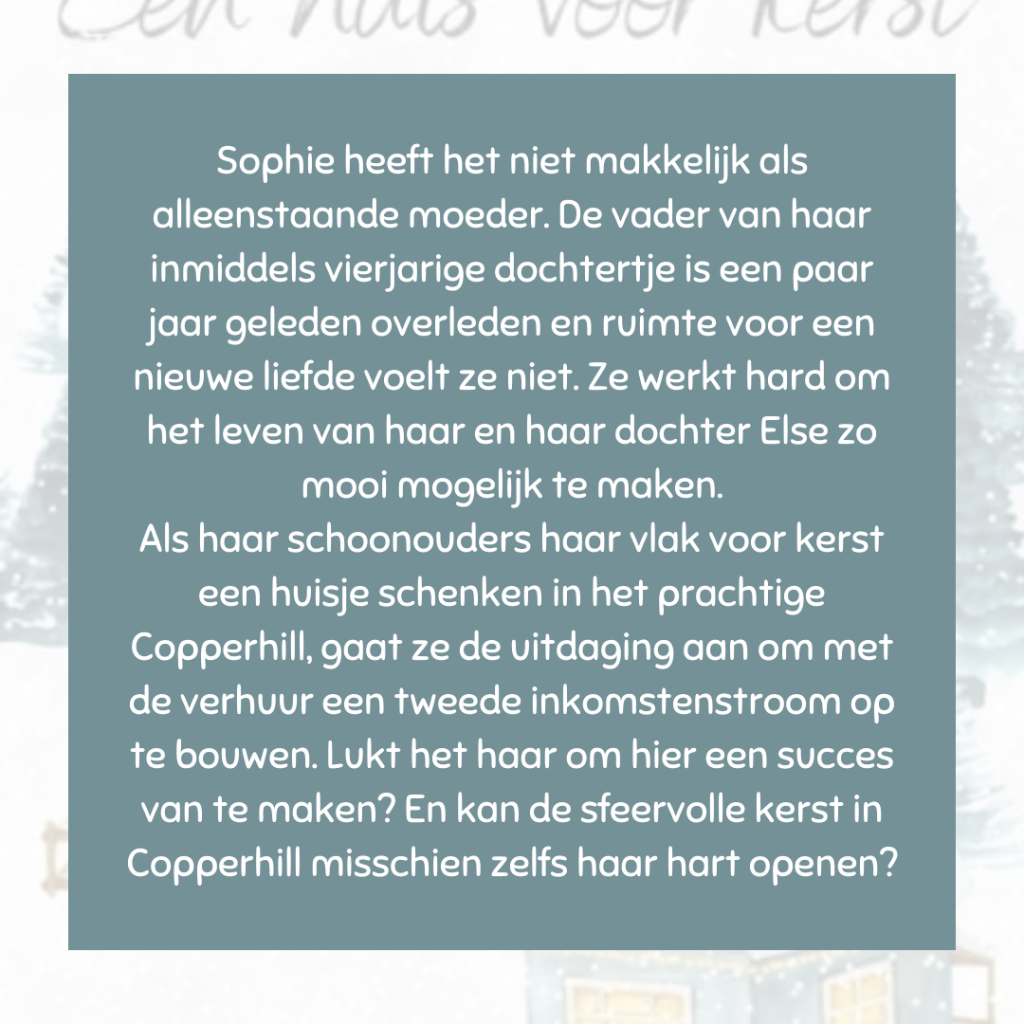 Dit verhaal leest heerlijk vlot. De beeldende schrijfstijl van Brenda zorgt ervoor dat je het verhaal als een film ziet afspelen. Heel leuk verhaal dat een echte kerstsfeer heeft en dus ideaal voor deze periode. 😊