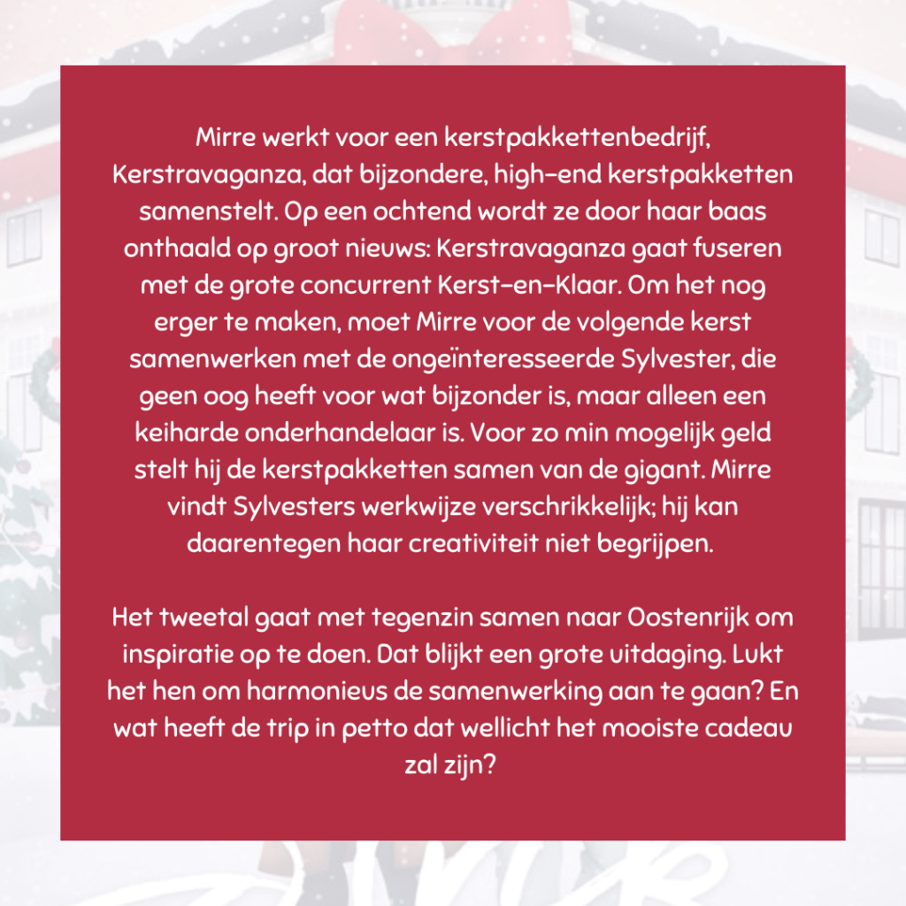 In een wisselend vertelperspectief tussen Mirre en Sylvester wordt het verhaal verteld. Ze kunnen elkaar niet uitstaan en worden er toch op uitgestuurd naar het magische Oostenrijk. De basis voor een enemies-to-lovers verhaal. Het kost heel wat tijd om ze bijeen te brengen, maar als ze elkaar eindelijk gevonden hebben, weet Lisanne Stam me te verrassen met een nieuwe wending in het verhaal. Deze wending is ook de basis voor het tweede deel, want het verhaal over de familie Crans en Engel is nog niet uitverteld.