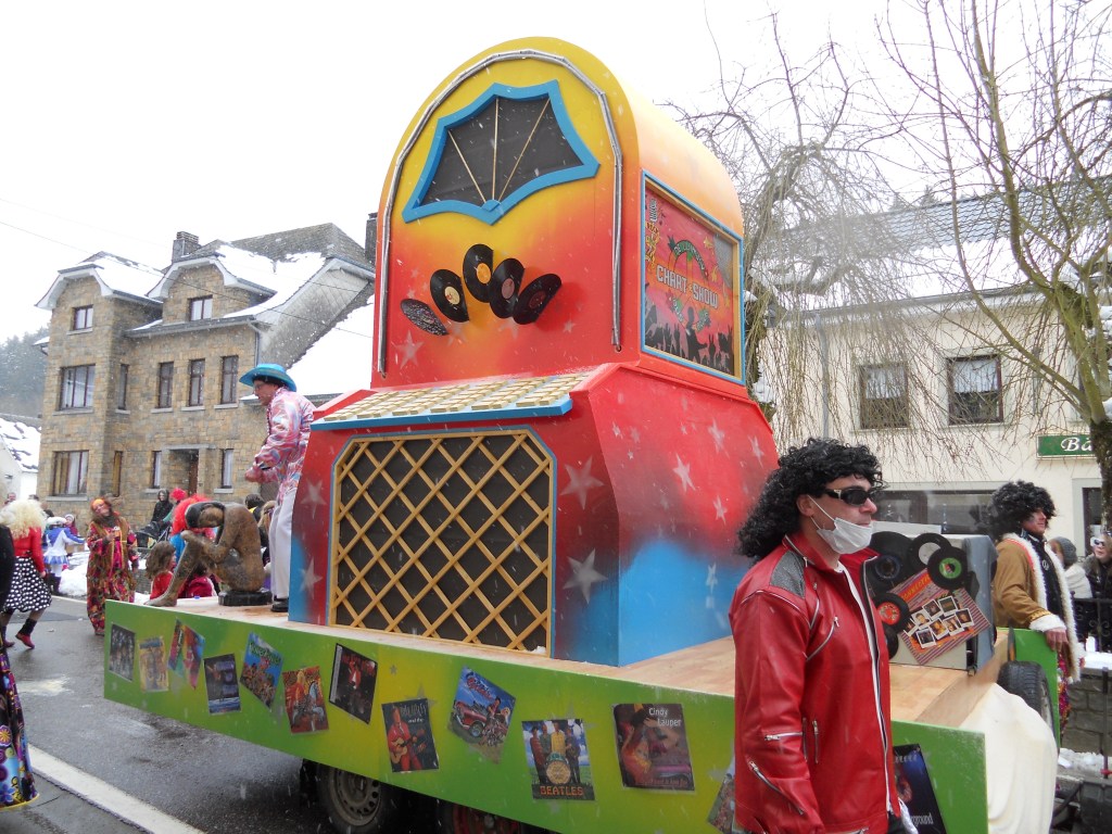 Toch wil ik nog iets positiefs over carnaval zeggen. Een tiental jaren geleden waren we tijdens de carnavalsperiode enkele dagen in Burg-Reuland, in de oostkantons. Dit is een echt carnavalsdorp en toen wij er waren, was er de carnavalsstoet. De drukte viel heel goed mee, waarschijnlijk enkel de plaatselijke bewoners, en de wagens waren knap gemaakt. Hoe mensen hun hart en ziel leggen in zo’n feest, vind ik alleen maar prachtig.