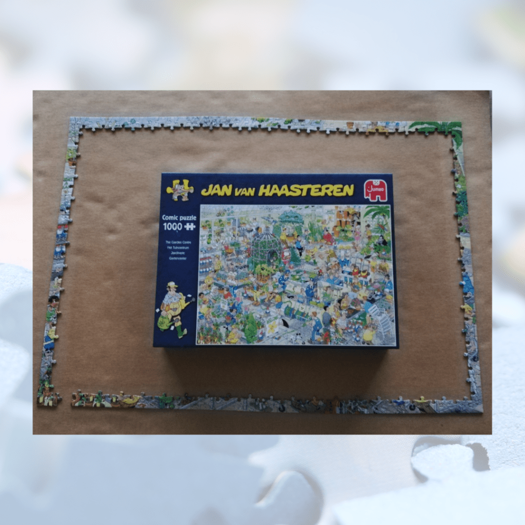 Zo’n Jan van Haasteren-puzzel van 1000 stukjes is denk ik 5 à 6 uur. Ik puzzel op een groot karton, zodat ik (indien nodig) de puzzel makkelijk kan verplaatsen. Er zijn ook professionelere uitvoeringen te koop, maar dat vind ik toch een beetje duur. Misschien is een puzzelmat die je kan oprollen een optie voor jou? (ik heb er zien liggen in de Action)