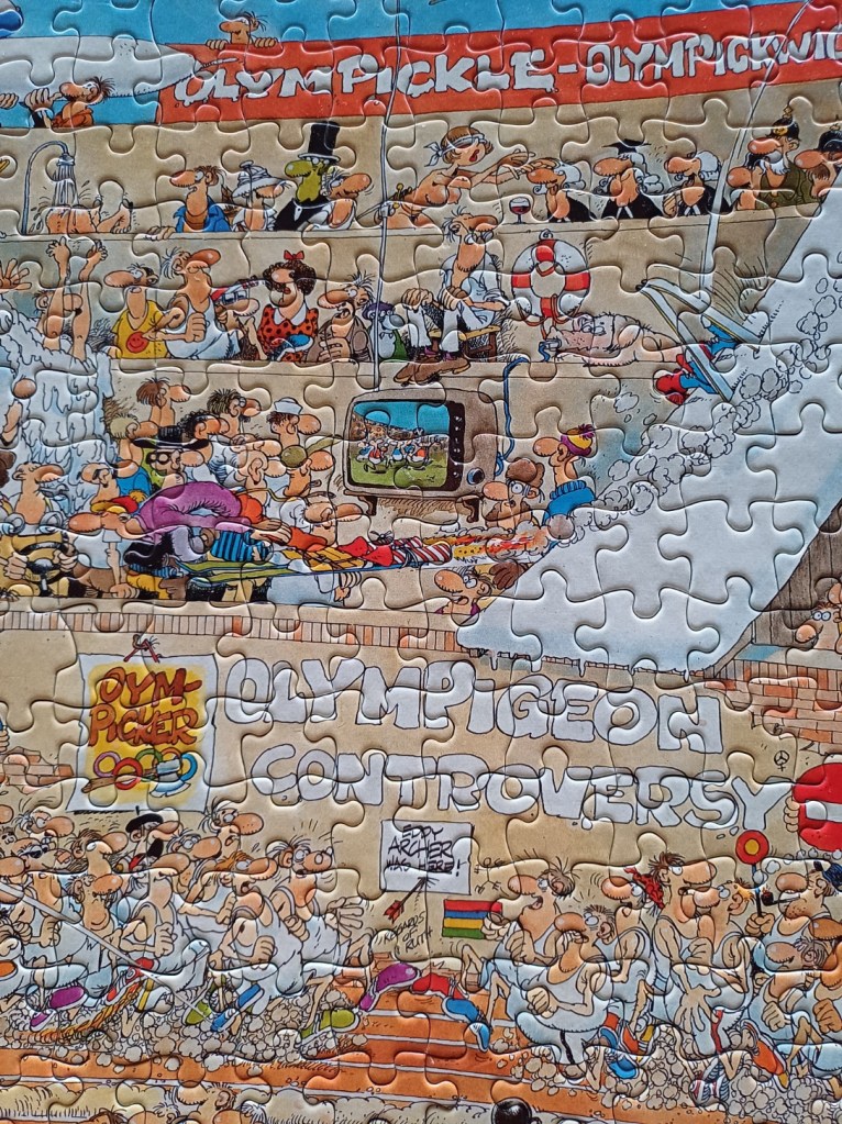 Het is een puzzel van 1000 stukken. Sommige personages kennen we nog steeds in de huidige Jan van Haasteren-puzzels, zoals bv. de inktvis.