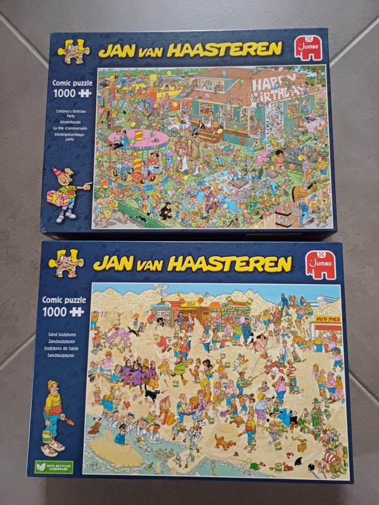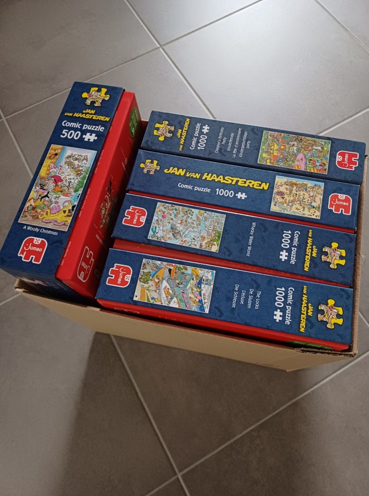 En zo geschiedde. Ik kocht 6 puzzels over voor 50,00 euro. Als je weet dat een puzzel van 1000 stukken bijna 20,00 euro kost en een puzzel van 500 stukken bijna 15,00 euro, vind ik dat ik een goede koop heb gedaan. 😉