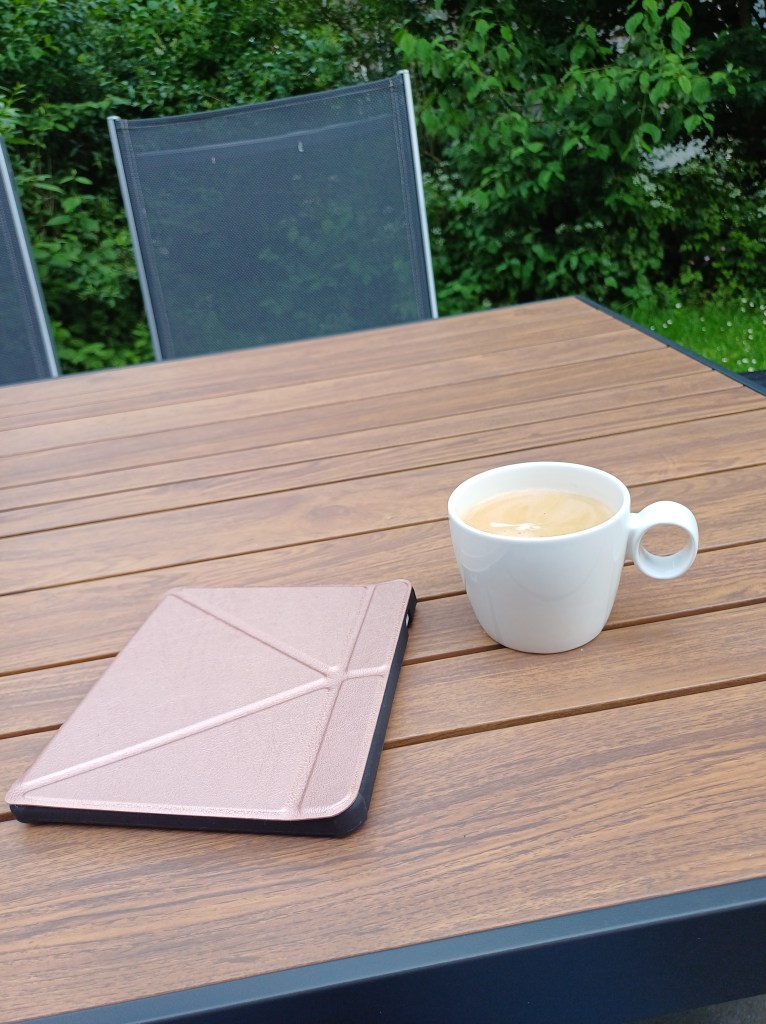 ’s Avonds had ik nood aan frisse lucht. We maakten een wandelingetje in het park en de nabije omgeving. Wat is Zuid-Limburg toch mooi! Omdat het qua temperatuur nog redelijk te doen was, nestelde ik me op het terras met mijn e-reader en een koffietje.