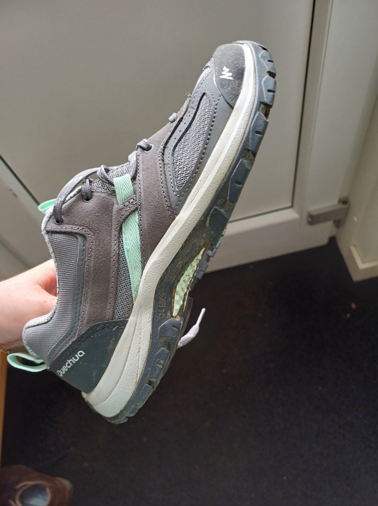 Mijn wandelschoenen zagen een beetje vuil, dus ik heb ze zo goed en zo kwaad als het kon proper gemaakt.